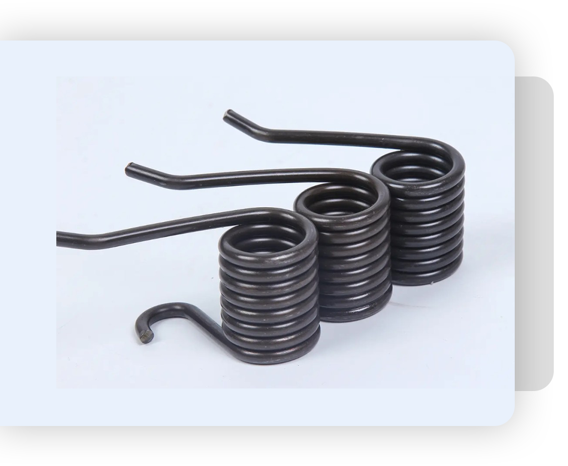 We offer s a selection of torsion springs with legs of equal length oriented at varying unloaded angles. Torsion springs can store and release angular energy or statically hold a mechanism in place by deflecting the legs about the body centerline axis. They offer resistance to twist or rotationally applied force. A spring of this type will reduce in body diameter and increase slightly in body length when deflected in the preferred direction of the fabricated wind. Depending on the application, torsion springs can be designed to work in a clockwise or counter-clockwise rotation, thus determining the direction of the wind. Common torsion springs are those used in a clothes pin or a garage door.
